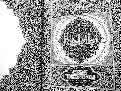 I was very pleased to hear that he was moving into Islamic themes with his next major book. Thompson has caught the intoxication of Arabic script, and the beauty of some of his line drawings beggars belief. As a life-long Arabian Nights obsessive, too, his choice of a Scheherazade-like narrator for a long intertwined tale of love and violence was never going to be a hard sell for me (although I see it has been critiqued by some for exhibiting "self-conscious Orientalism"; possibly so - but I think it's important to respect the author's genre intentions here. After all, the same could easily be said of various of Salman Rushdie's novels and - especially - his two children's books).